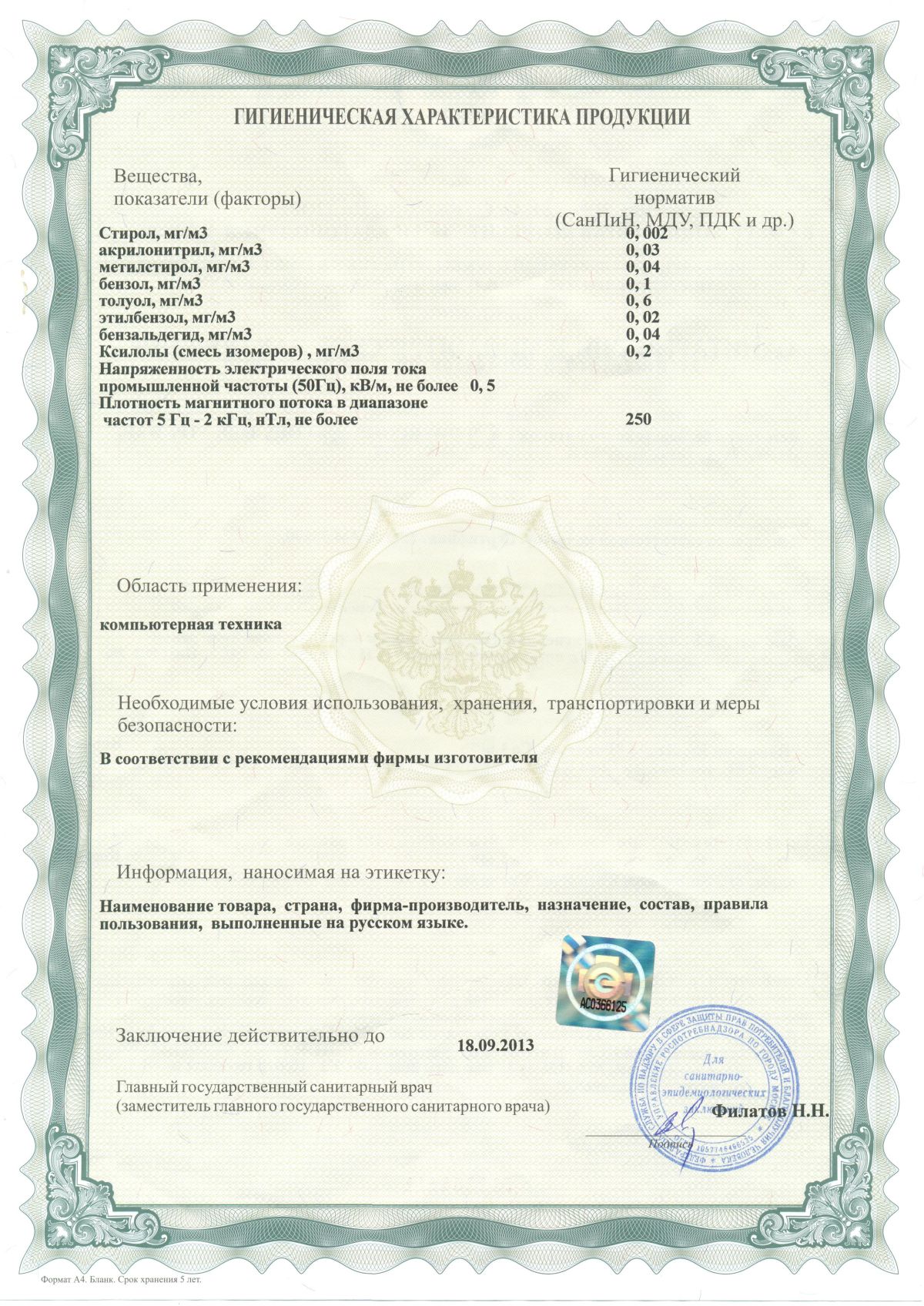 Производитель имеет официально действующее представительство на территории Российской Федерациии ....................................................................................................