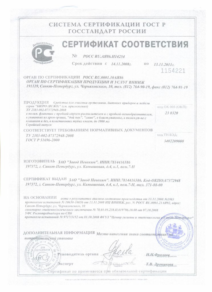Состав: вода более 30%, неионогенные ПАВ менее 5%, 1-пропанол менее 5%, консервант менее 5%, антистатический компонент менее 5%