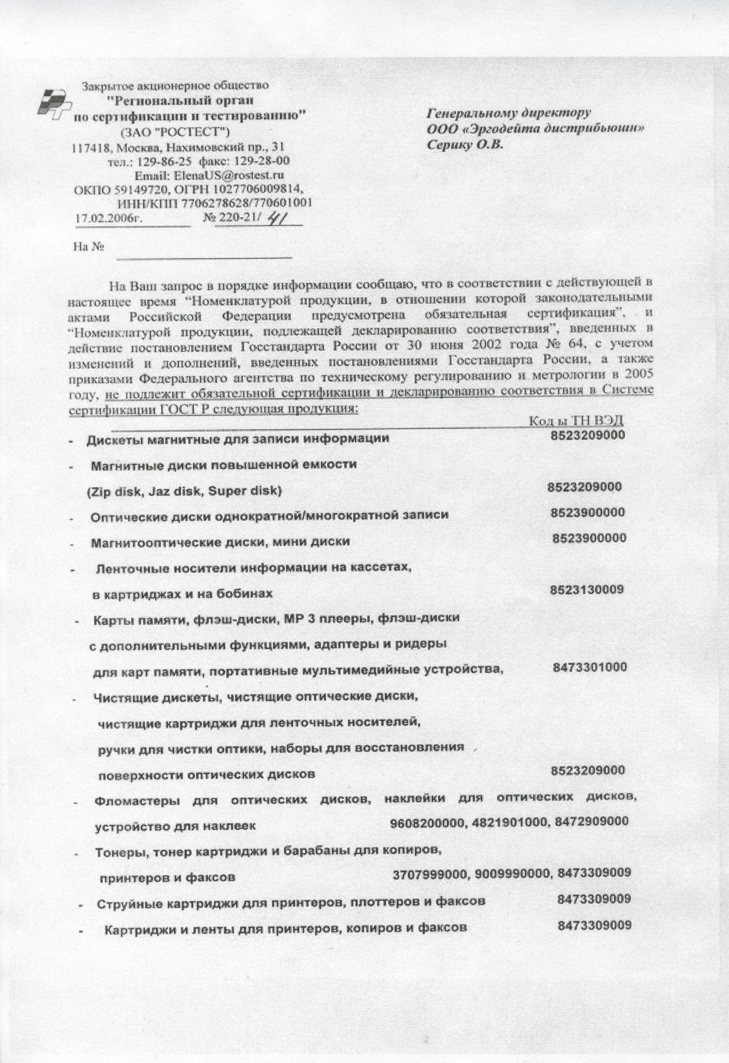 Тип упаковки ....................................................................................................